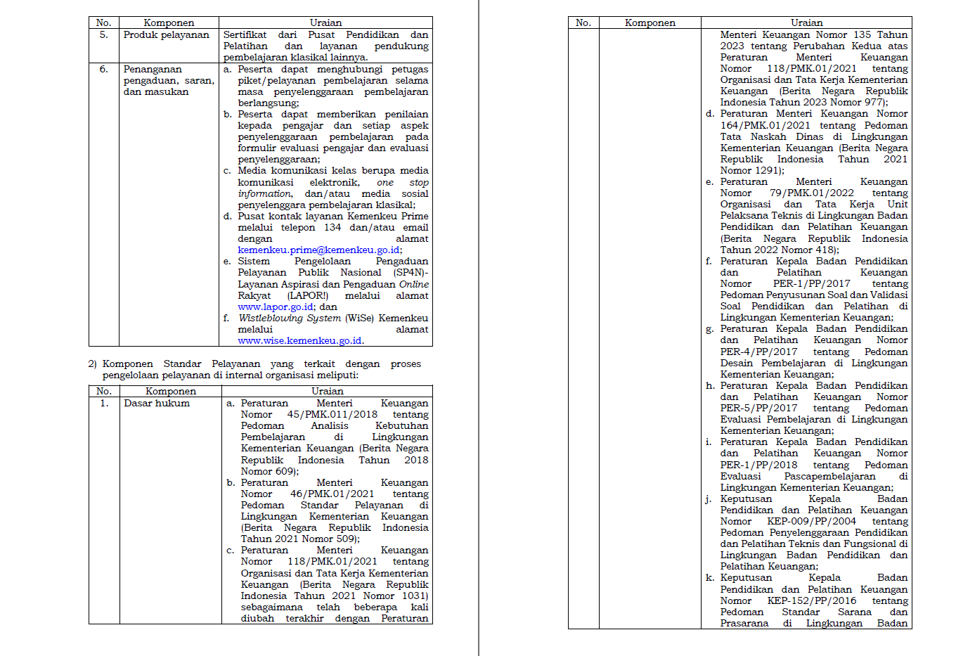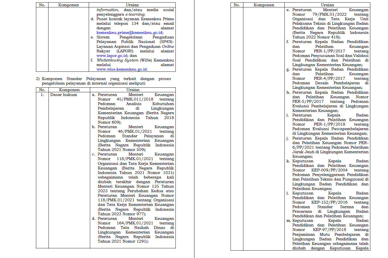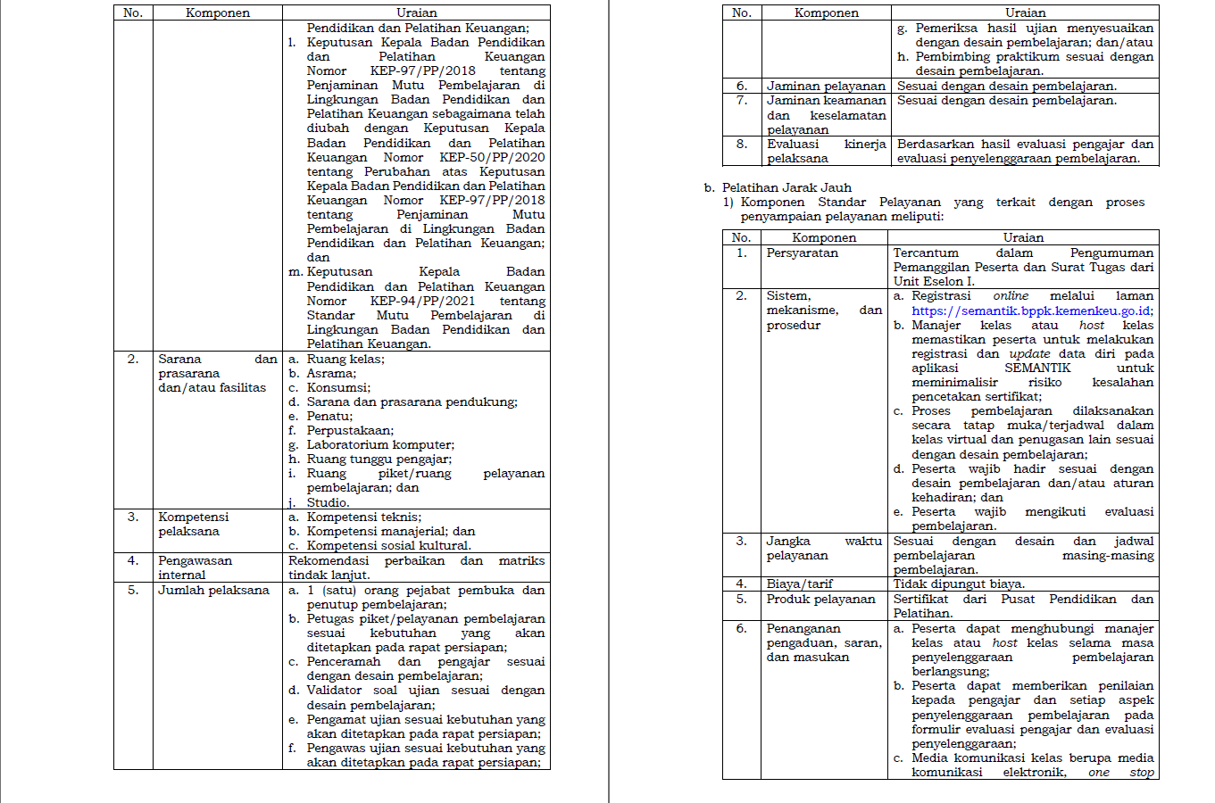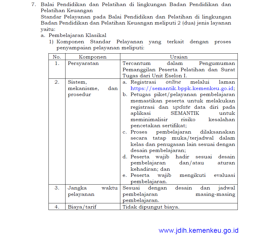 Berikut ini merupakan standar pelayanan Balai Diklat Keuangan Yogyakarta