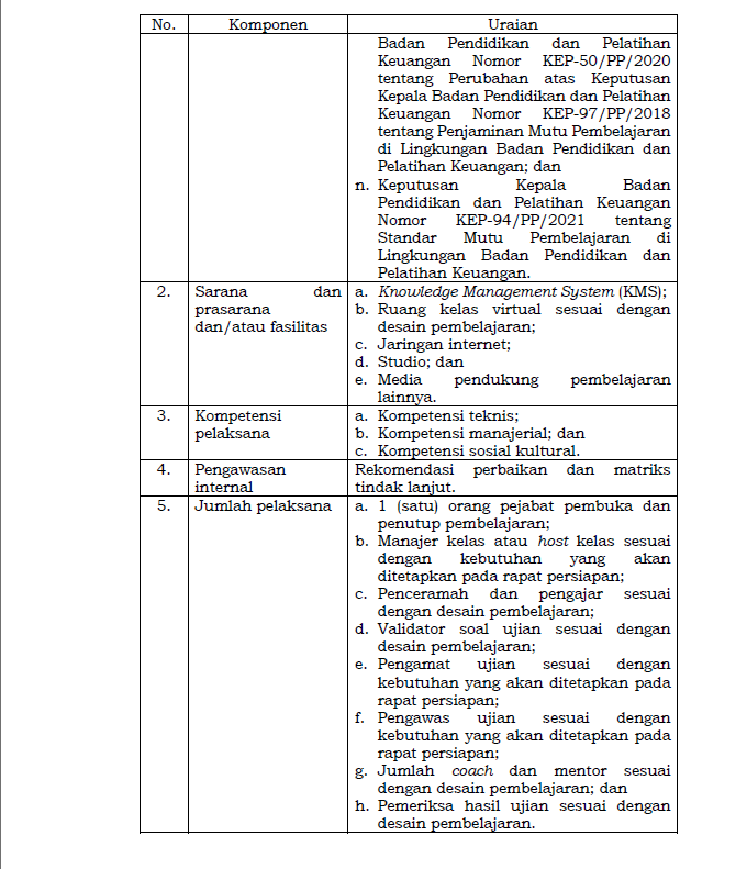 pelaksanaan penjaminan mutu pembelajaran di lingkungan Balai Diklat Keuangan;