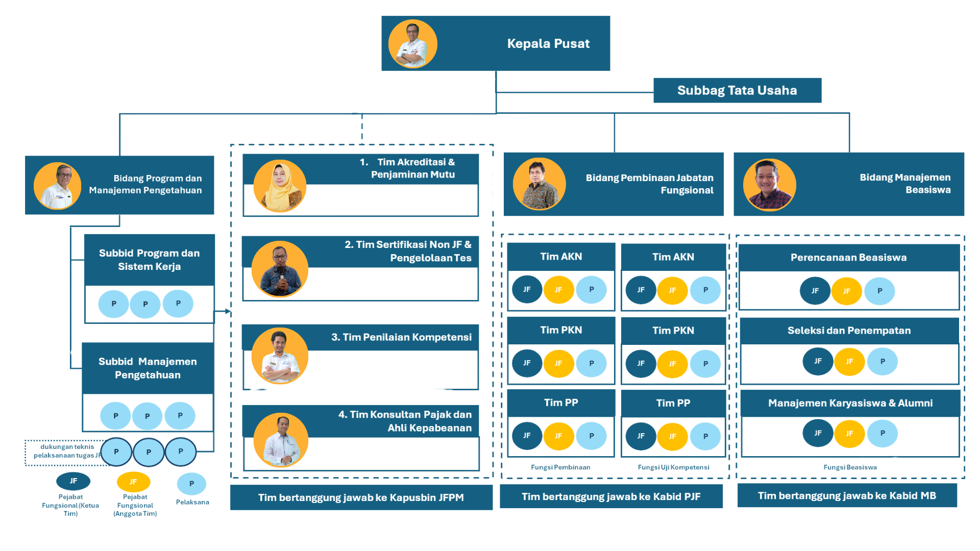 Struktur organisasi Pusat Pembinaan Jabatan Fungsional dan Penjaminan Mutu dapat dilihat pada gambar di bawah ini.